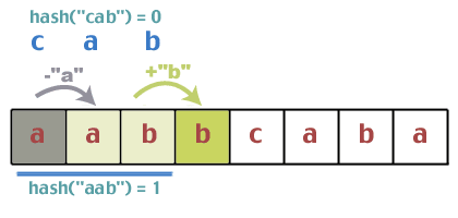 hash = ((hash * mul) + Text[Offset + Length]) % mod;