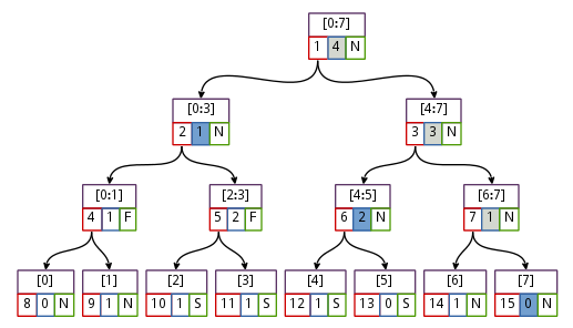 Segment tree is a data structure, which can be thought of as a tree of intervals of an underlying array, constructed so that queries on ranges of the array as well as modifications to the array's elements may be efficiently performed. O(n) preprocessing O(log n) query